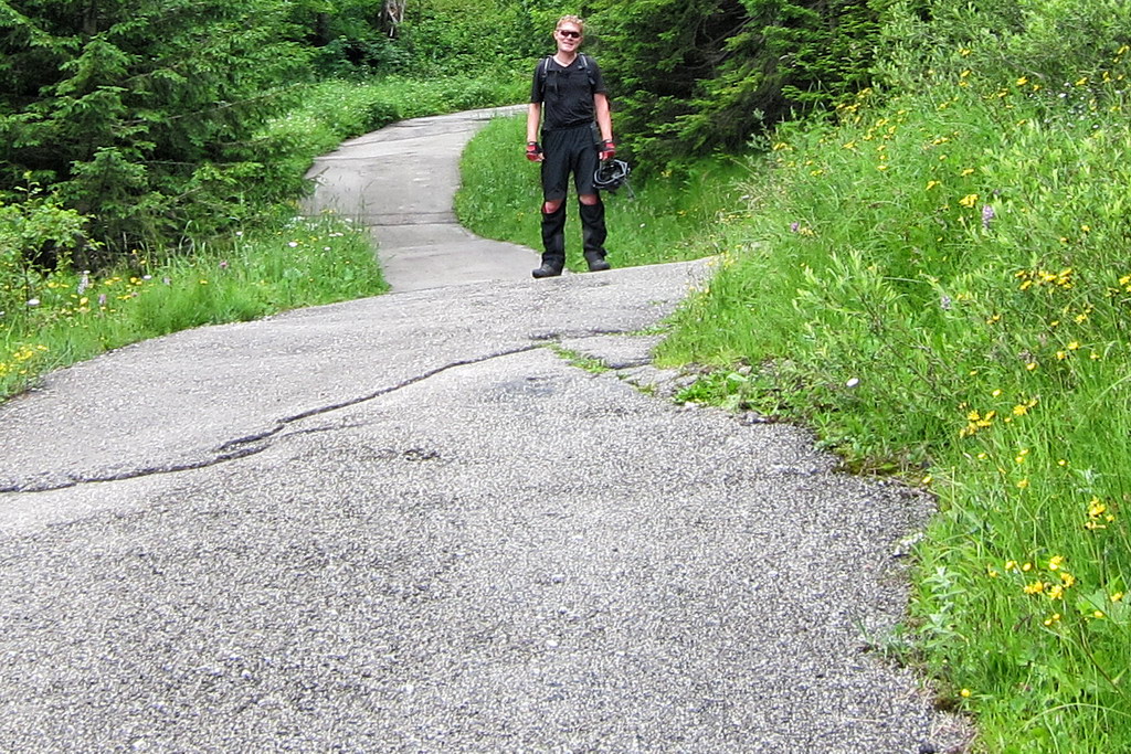 Die nächste Station ist auch mit 1576m die höchste Stelle der Tour. Der Baoleskopf. Die Auffahrt ist so steil, dass man nicht komplett durchfahren kann. Man kippt nach hinten vom Bike! Klar kann man mit Gewichtverlagern viel beeinflussen, allerdings kommt man irgendwann an Grenzen.